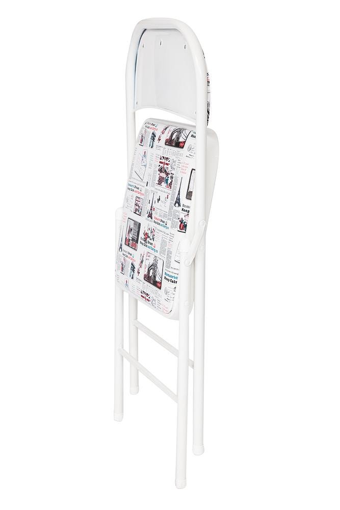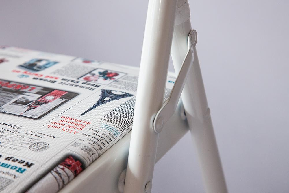 Стул складной Фолдер (Folder) с мягкими сидением и спинкой. Каркас: металл; сиденье/спинка: экокожа. Представлен в трех цветах - Газетный принт, Белый и Желтый.