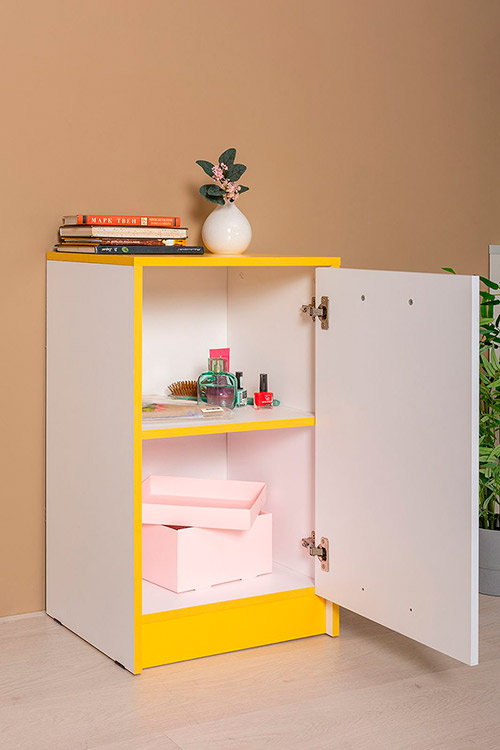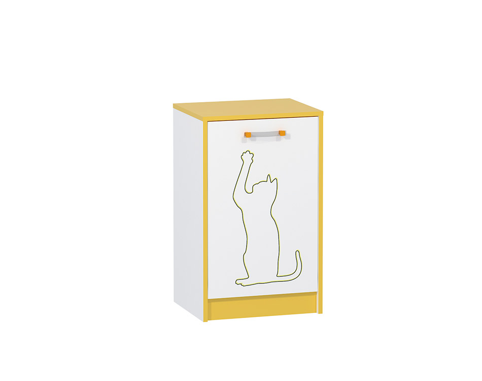 Тумба Альфа 13.54 оригинальная модель для комнаты современного школьника. Стильный дизайн и яркие акценты приведут в восторг любого подростка. Универсальные цвета актуальны как для мальчика, так и для девочки. Универсальная тумба отлично подойдет в качестве компаньона как к письменному столу, так и к кровати. Здесь ребенок сможет хранить свои личные вещи, одежду или учебные материалы. Система хранения состоит из двух вместительных отделений, скрытых за распашной дверцей. Фасад оформлен фотопечатью с изображением силуэта кошки. На поверхности тумбы можно разместить игрушки или гаджеты.