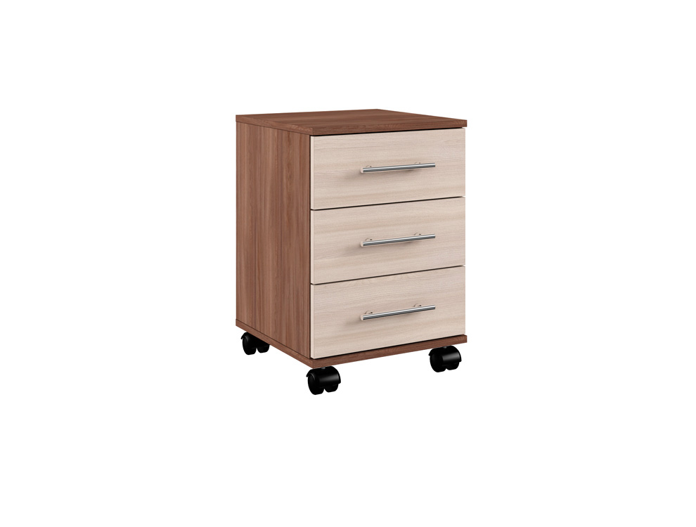 Тумба Брайтон - удобная тумба для хранения. Найдет свое применение в любой комнате, где нужна небольшая тумбочка, в рабочем кабинете, гостиной или спальне. На ней можно сидеть, что увеличивает ее функциональность. Выполнена в цветах Ясень шимо светлый и ясень шимо темный. Ручки ящиков металлические (цвет "матовый хром"). Ящики выдвижные на роликовых направляющих. В тумбе 3 ящика. Внизу установлены пластиковые колеса.