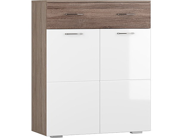 Тумба для обуви Барселона используется в прихожей Барселона. По своему названию понятно ее предназначение. В ней вы сможете хранить обувь, чтобы освободить место в прихожей и не захламлять её. В тумбе так же есть ящик, где вы сможете хранить мелкую одежду: шарфы, перчатки. В тумбе есть 3 ряда для горизонтального хранения. Тумба выполнена в цветах Винтаж Оксид/Белый Глянец. Фасад ящиков сделан из МДФ, верхний ящик выполнен в цвете Сонома темная. Ручки ящиков металлические. Задний щит (ДВП) в цвет корпуса. Кромка ПВХ 2 мм. Верхний ящик снабжен полновыкатными направляющими.
