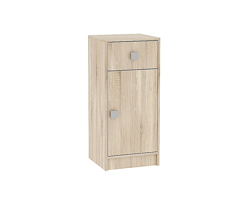 Изделие выполнено из ЛДСП толщиной 16 мм. Ручки пластиковые. Распашная дверь открывается за счет четырехшарнирных петель, можно повесить на любую сторону. Выдвижной ящик оснащен роликовыми направляющими.