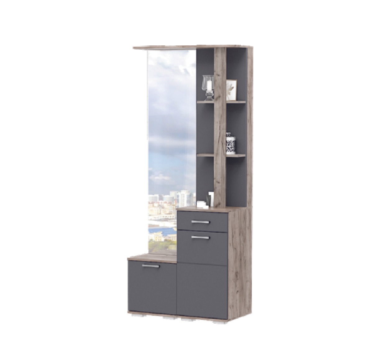Тумба с зеркалом 0,8 Бостон №4 входит в состав модульной прихожей Бостон. Корпус изготавливатеся из ЛДСП в цвете Дуб бунратти, фасад - МДФ в цветах Белый глянец или Графит. Петли с доводчиком, полновыкатные направляющие.