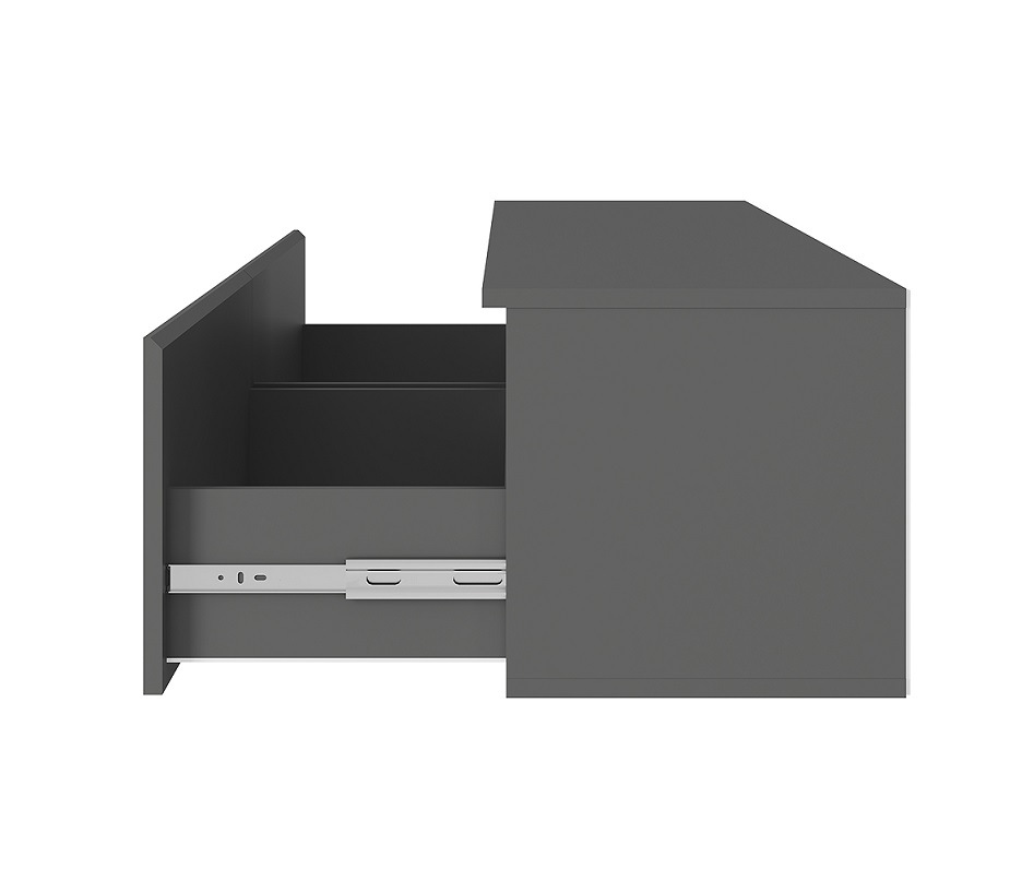 ТВ тумба Симпл Графит - это один из модулей коллекции мебели с одноименным названием. Корпус и фасады выполнены из ЛДСП толщиной 16 мм. Корпус в цвете Графит, Фасады - Графит. Направлющие на ящиках полновыкатные шариковые.