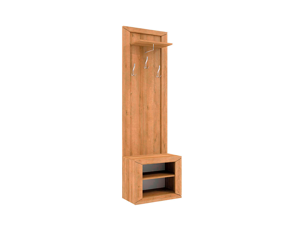 Вешалка Бостон БС-10 - элемент мебели в стиле лофт. Вешалка с тремя крючками для одежды. Внизу ниша для обуви с одной полкой. Вверху полка для головных уборов и штангой для одежды.